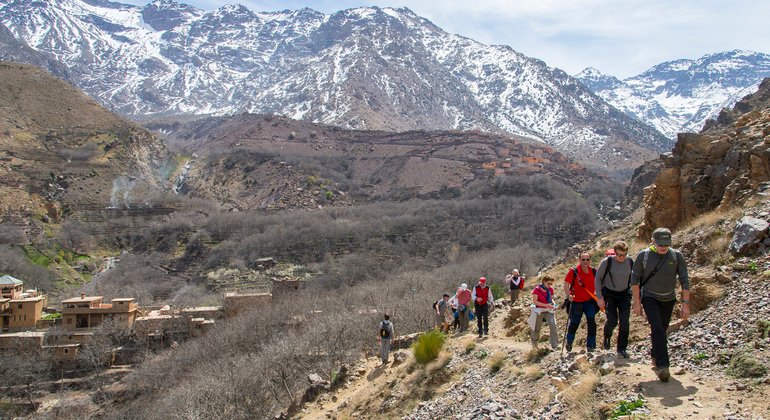 Morning: Departure from Marrakech Your journey begins with a scenic drive from Marrakech to Imlil, the starting point for the ascent of Mount Toubkal. The road winds through the High Atlas Mountains, offering breathtaking views of the surrounding landscapes. Afternoon: Arrival in Imlil and Acclimatization Arrive in Imlil, a picturesque village nestled in the foothills of the mountains. Meet your local mountain guide and embark on a gentle acclimatization hike in the surrounding area. Explore the charming village, interact with locals, and enjoy the tranquility of the mountain setting. Evening: Overnight Stay in Imlil Check into a local guesthouse or mountain refuge for a comfortable overnight stay. Enjoy a hearty dinner, and rest to prepare for the challenging ascent ahead.